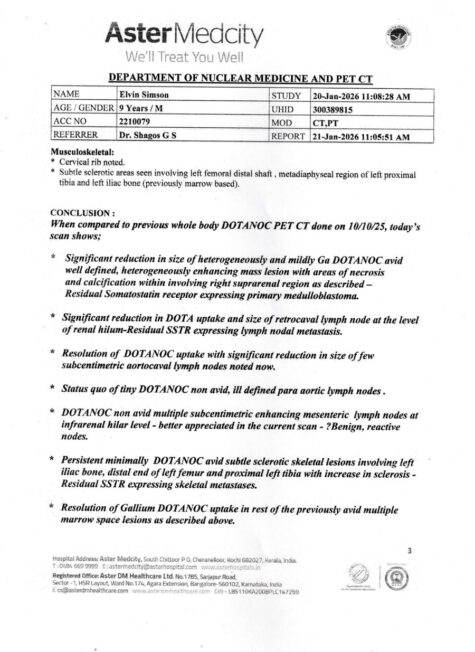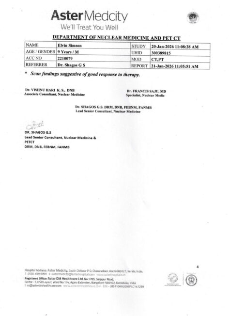 For the past several months, he has been undergoing cancer treatment and has been admitted to Aster Medcity Hospital, Kochi, for continuous medical care, including various advanced treatments. Every child deserves a chance to Dream, to Learn, and to Grow without limits.